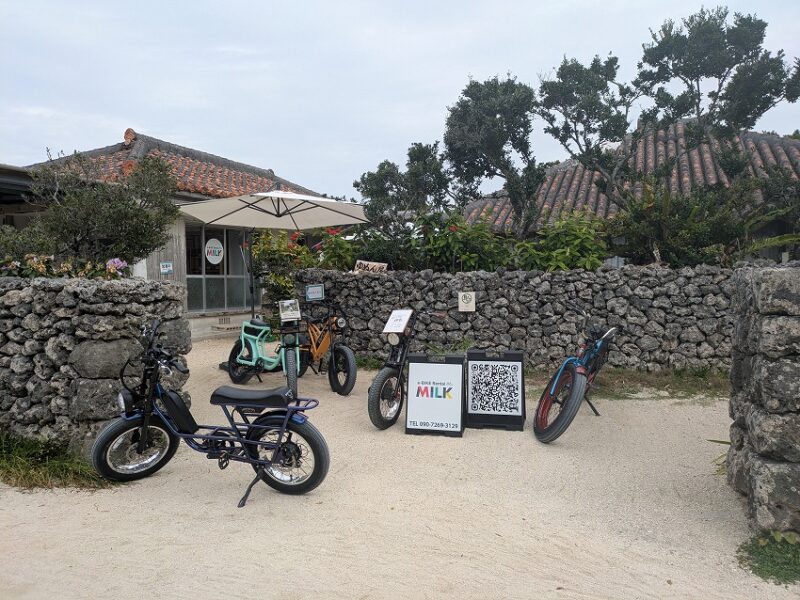 電動アシストは当たり前だとしてね、石垣島の道は殆ど舗装されていなくて、ガタガタだったり、砂道だったりする。でも、ここの自転車はタイヤが太い自転車ばかり。ファットバイクってやつ?