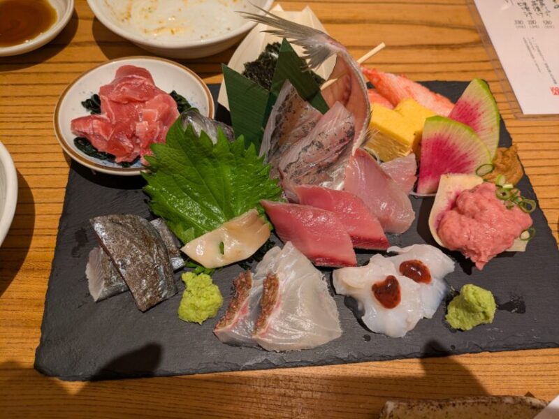2件目は、少し静かめなお店に入りました。刺し身盛りが絶品!